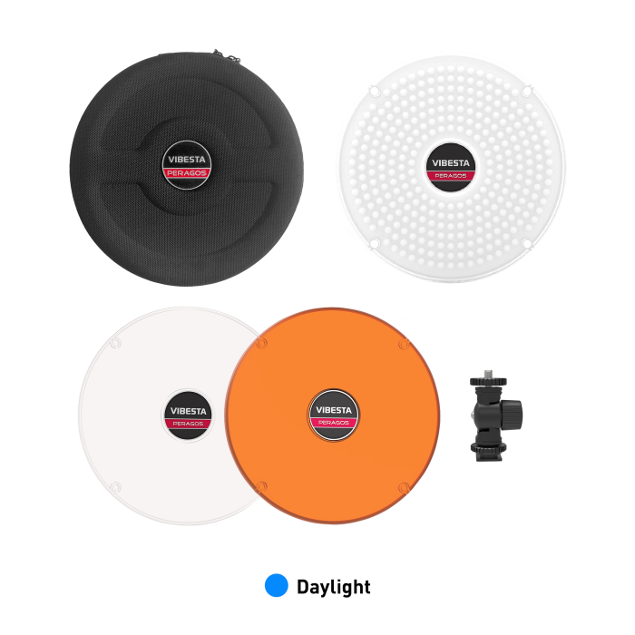 Being Very Compact makes it easy to travel with and a complete lighting kit of several disks can be packed in a small bag. The Vibesta Peragos Disk is one of the most versatile lights on the market.